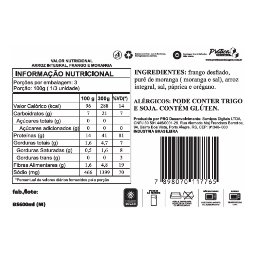 Nosso Arroz Integral, Frango e Moranga combina o sabor leve do arroz integral soltinho, frango desfiado com tempero leve e moranga cozida. Uma combinação equilibrada, leve e com aquele sabor de comida feita em casa.